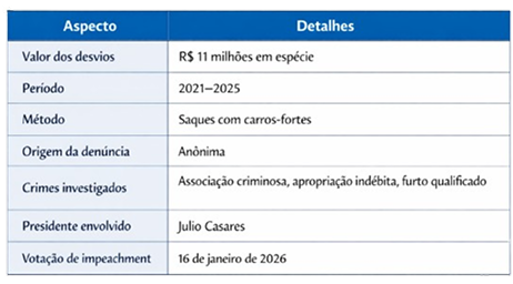 A investigação aponta ainda movimentações financeiras incomuns, incluindo saques em espécie que somam milhões de reais ao longo dos últimos anos.